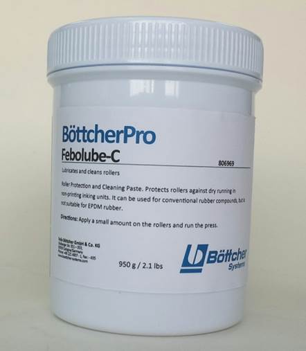 Febolube-C Lubricant for dry running ink rollers. For conventional/chameleon rubber compounds (not compatible with EPDM). Small side benefit of cleaning... Read More