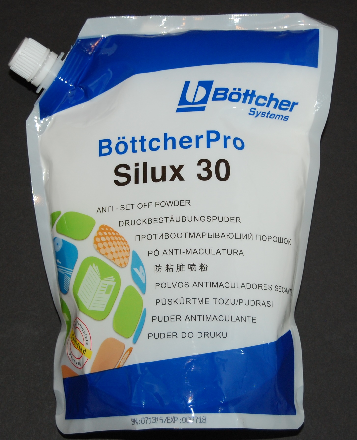 Premium quality uncoated anti-set off powder. Does not absorb moisture from atmosphere or printed sheet. Fine Dust Reduced Certified. ... Read More